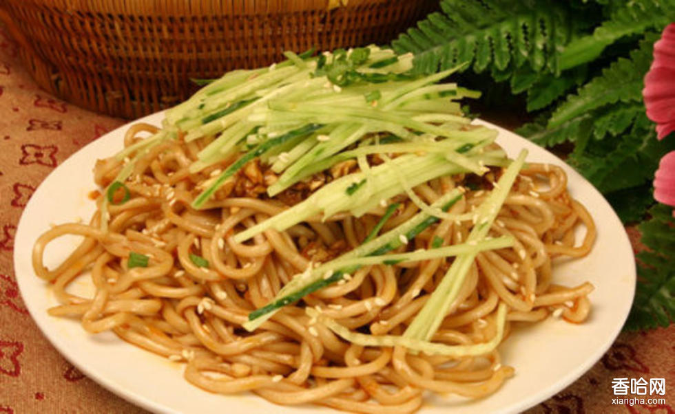 雞絲涼面?zhèn)鹘y(tǒng)小吃,歷史悠久,在四川全省有很大影響,近年已流傳于全國(guó)各地,特別是北方廣大地區(qū)。機(jī)制的面條入沸水中煮熟。煮時(shí)不能煮得太軟,撈出放案板上趁熱,灑熟菜油少許,抖散快速降溫,到互不粘連且己冷卻為止,成為涼面。