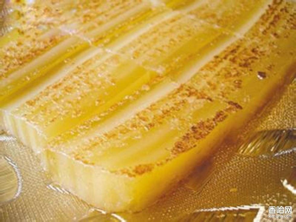 蓬溪姜糕糯米養(yǎng)胃溫中,姜汁散寒祛痰,蜂蜜養(yǎng)陰益壽,麻油潤腸保肝,為素食之妙品,病家之餐食,老幼食用滋補(bǔ)營養(yǎng)。如果有人問蓬溪縣的特色食品是什么,很多蓬溪人都會不假思索地告訴你——姜糕。蓬溪姜糕始創(chuàng)于清同治年間,以其獨特的配方生姜汁、蜂蜜、芝麻油、糯米、泉水制作而成,吃起來有油不膩,有糖不傷;潔如脂玉,軟似秋云。