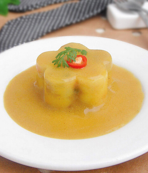 14、食用時(shí)取下土豆花,調(diào)和著咖喱一起吃。