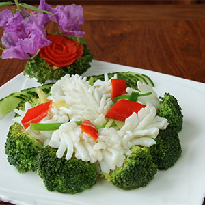 5、注意西蘭花與魷魚焯火時(shí)間不易太長(zhǎng),斷生即可,這樣才能好看。