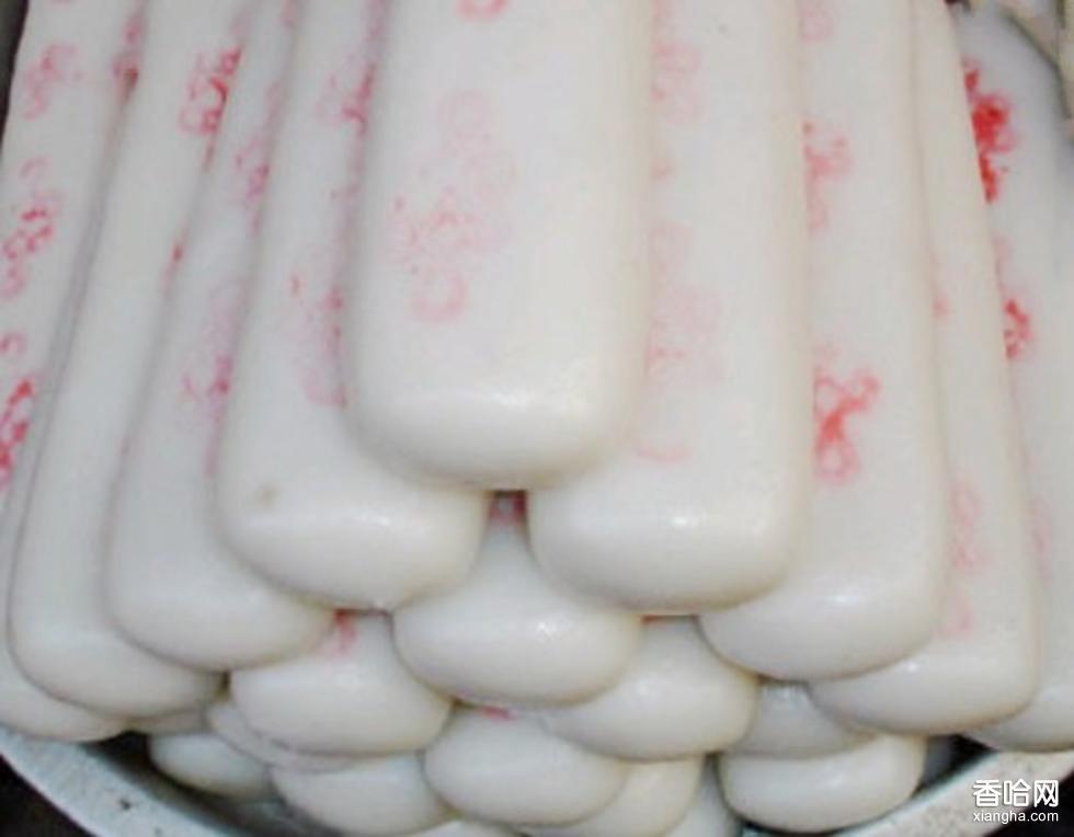 把米漿蒸熟后切成條形,拌以調制好的叉燒、肉末、蔥花、炸花生、醬料、香油等即可食用。特點是香、酸、脆、甜、咸適度,食而不膩。