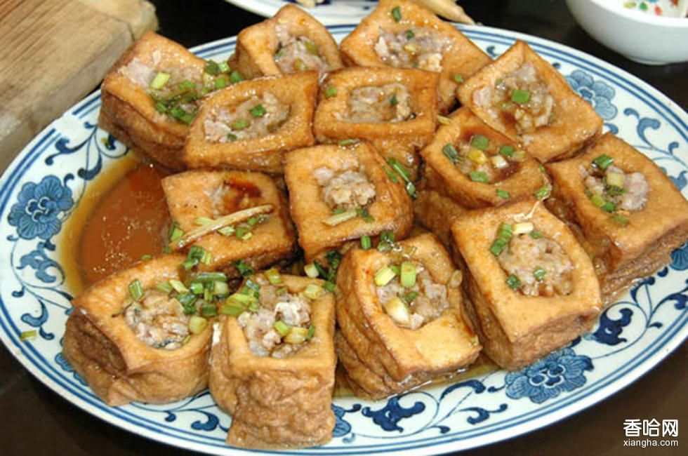 朋友,一年四季中,不論你什么時候來到賀州,都可以在賀州人的餐桌上品嘗到別具一格的賀州風味菜——菜釀。賀州人逢菜必釀,豆制品類、果菜類、根莖菜類、葉菜類,甚至豬大腸、豬血、豬網油都可以做成菜釀,還有生蔥大蒜照樣釀!有人做過統(tǒng)計,賀州菜釀有108種之多。