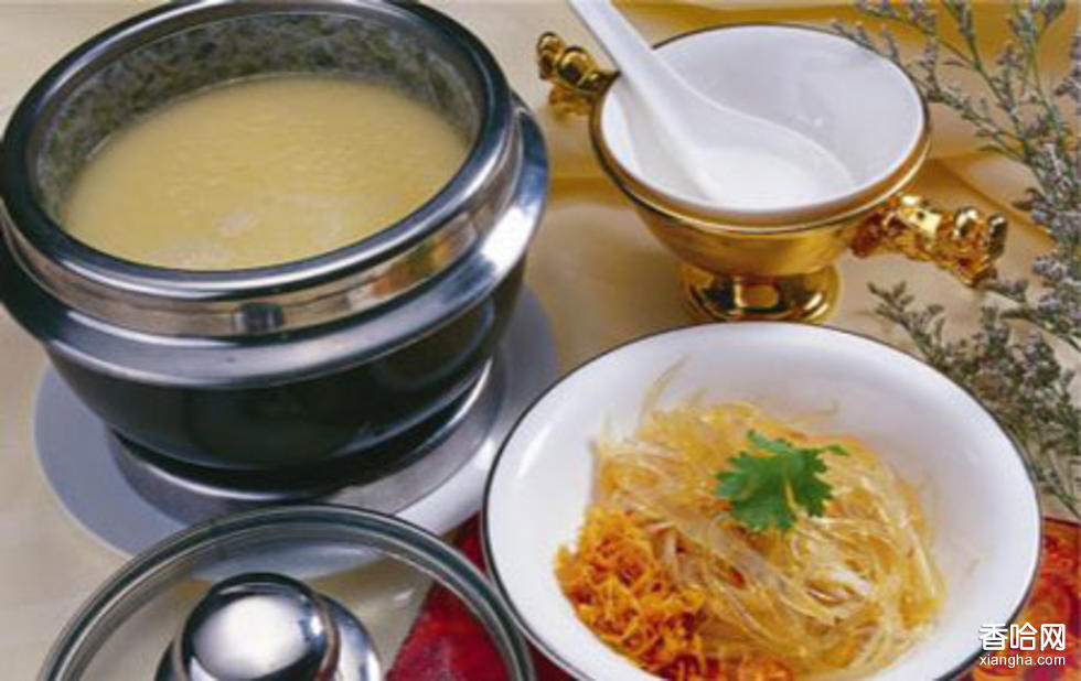 此湯精選上等魚翅,并配以秘制金湯熬制而成,具有滋陰、補腰腎、強筋骨之功效。
