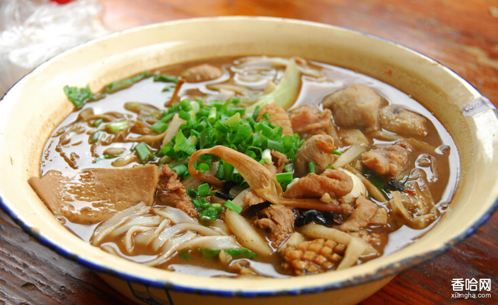 其做工考究,先將上好大米磨成漿,裝袋濾干,揣成粉團(tuán)煮熟后壓榨成圓根或片狀即成。 圓的稱米粉,片狀的稱切粉,通稱米粉,其特點(diǎn)是潔白、細(xì)嫩、軟滑、爽口。其吃法多樣。最講究鹵水的制作,其工藝各家有異,大致以豬、牛骨、羅漢果和各式佐料熬煮而成,香味濃郁。鹵水的用料和做法不同,米粉的風(fēng)味也不同。大致有牛腩粉、三鮮粉、原湯粉、鹵菜粉、酸辣粉、馬肉米粉等。