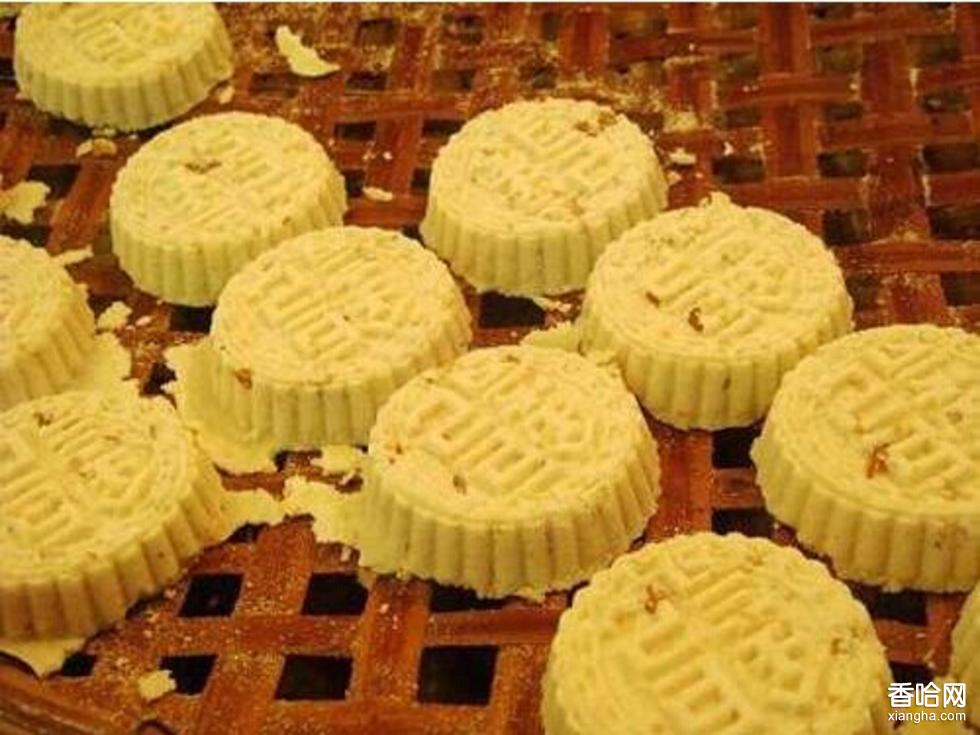 另一出處是清光緒末年間,香山縣(現(xiàn)中山市)有一書香世家,家道日落,經(jīng)濟(jì)日緊。時(shí)值其母壽辰,正為招待親友的開支發(fā)愁,其家的婢女名潘雁湘,自梳女,生性聰明、好學(xué)、平時(shí)練得一手制糕點(diǎn)的好手藝;她采用綠豆粉、用糖腌制過肥豬肉片,精心制作綠豆夾肉餅,敬奉給老夫人,餅入口甘香松化,嚼之,肥而不膩,有杏香,賀壽者共食,贊聲不絕。后來,食者提筆寫了一幅字:“齒頰留香”。從此,綠豆餅便出了名,并改名為“杏仁餅”。