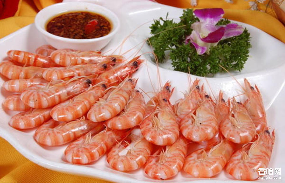 北海盛產(chǎn)三十多種蝦,以對(duì)蝦出名。對(duì)蝦個(gè)體大,肉肥味鮮,營(yíng)養(yǎng)價(jià)值很高,是北海人最愛(ài)吃的海產(chǎn)品之一。北海人吃蝦很講究,喜歡吃活蝦、吃天然蝦(北海人叫捕撈蝦)、吃白灼蝦。他們到了餐館,先到飼養(yǎng)水池邊看蝦,首選大明蝦或花蝦,并聲明養(yǎng)殖蝦退貨。為會(huì)么要吃活蝦?北海有句俗語(yǔ),"魚蝦蟹,死了就臭",為什么要吃天然蝦?北海人有個(gè)比喻,天然蝦跟養(yǎng)殖蝦,好比家雞和飼料雞。為什么要白灼?白灼蝦原汗原味,味鮮、爽口、脆滑,吃了不上火,餐館老板也充不了假。死蝦充不得,因?yàn)樗牢r白灼后不但味不正,而且頭是黑色的;養(yǎng)殖蝦也充不得,養(yǎng)殖蝦白灼后顏色鮮紅,天然蝦顏色較淡,一看就清楚???