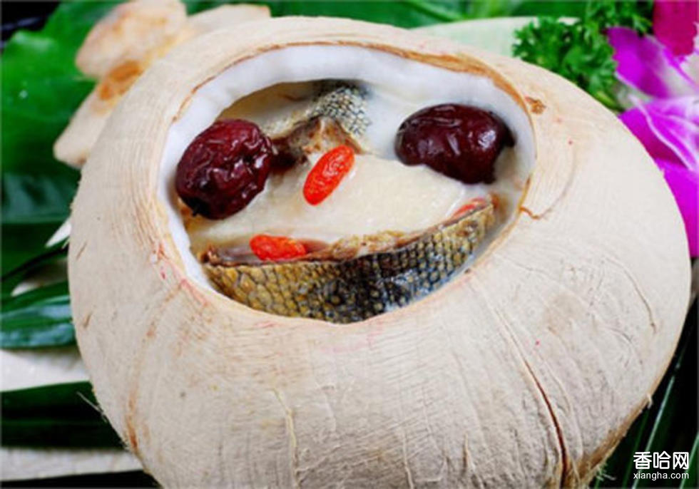 海南特產(chǎn)名菜,用鮮椰子為盅,配多種輔料,精燉乳鴿而成,曾于1988年第二屆全國烹飪技術(shù)比賽中獲金牌獎。