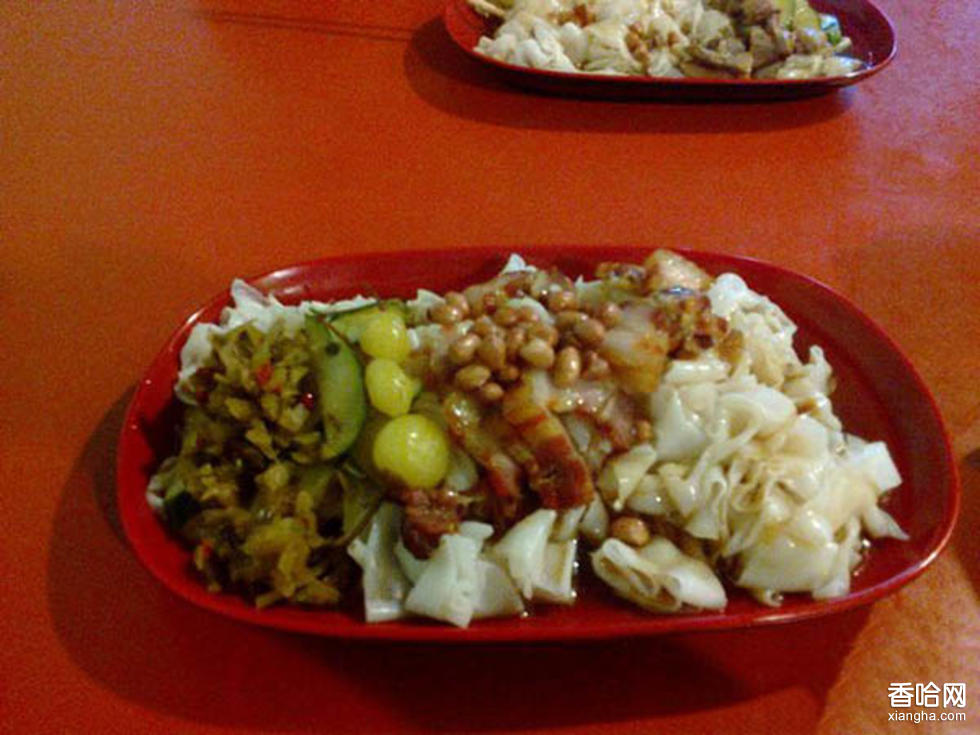 廣西貴港市東龍鎮(zhèn)特色小吃,主料主要用米粉、牛肉巴、油炸花生、酸黃瓜、酸豆角、油炸脆、叉燒、香菜等,佐料主要有米醋、秘制調(diào)料等。