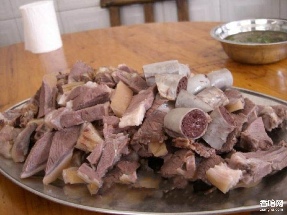 吃時,先抓適量凈粉于碗中,再依次加入牛肉巴、油炸花生、酸黃瓜、酸豆角、油炸脆、叉燒、香菜,加店家給的秘制調(diào)料攪拌,即可食用,與朝鮮冷面有區(qū)別的,雖然兩者都是不加熱即食,但口感相差甚遠。