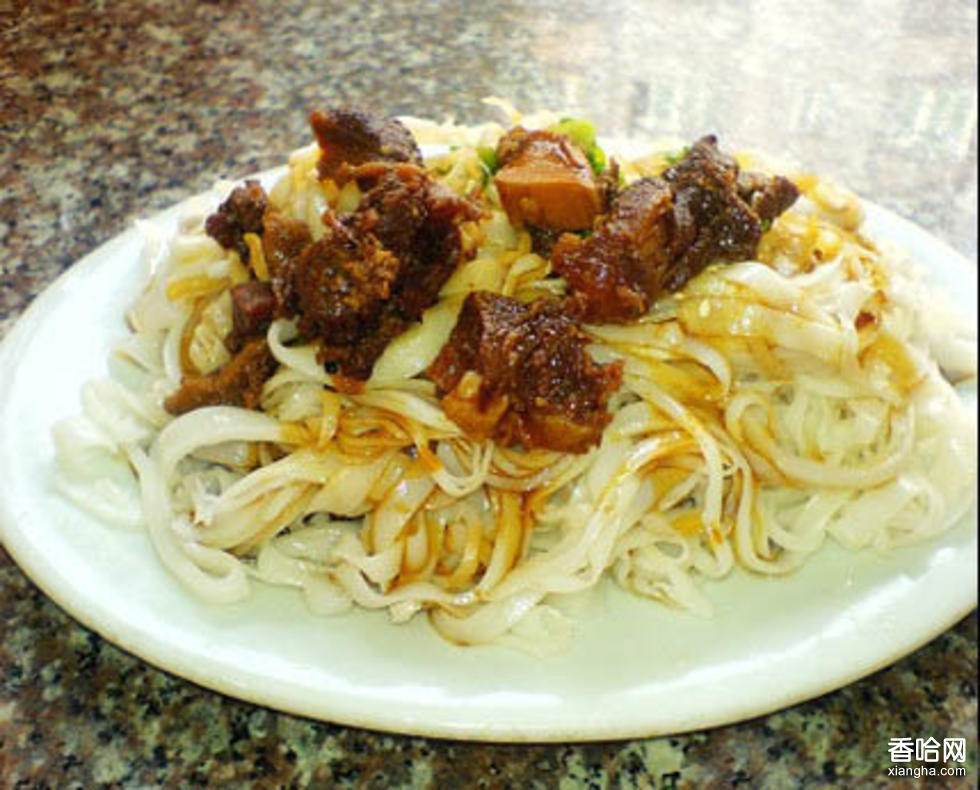 河粉又有稱“湯粉”、“老友粉”。以扁米粉為主,佐以瘦肉牛肉牛腩等鹵肉,適量調(diào)味料以及青菜少許,用豬骨鮮湯熬煮而成,肉香鹵味盡貫于米粉之中,縱遠(yuǎn)觀亦能聞見(jiàn)香澤濃郁。