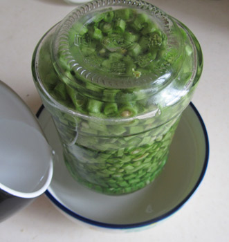 5 三天后觀察豇豆顏色,由綠變黃后即可轉入冰箱中冷藏。