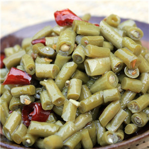 泡豇豆,就是腌制過的豇豆,是天然綠色的菜肴,開胃下飯,因?yàn)榕蒴购胸S富的優(yōu)質(zhì)蛋白質(zhì)、碳水化合物及多種維生素、微量元素等,可補(bǔ)充機(jī)體的招牌營養(yǎng)素。其中含有的B族維生素能維持人體的正常的消化腺分泌和胃腸道蠕動(dòng)的功能,抑制膽堿酶活性,從而達(dá)到可幫助消化,增進(jìn)食欲的功能。