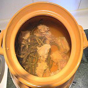 8.1小時后,將豆角段放入,炒勻,繼續(xù)燉約20分鐘,中間翻炒幾下,讓豆角入味均勻,根據(jù)口味加適量鹽即可。