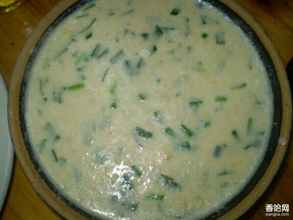土家人的飲食真是花樣百出,將水浸泡過的黃豆用磨子磨碎,然后摻入切細的青菜葉,然后用溫火煮熟即可。此樣菜雖做法簡單,但營養(yǎng)價值極高且味鮮美,為當?shù)厝顺S玫囊坏啦恕?/p>