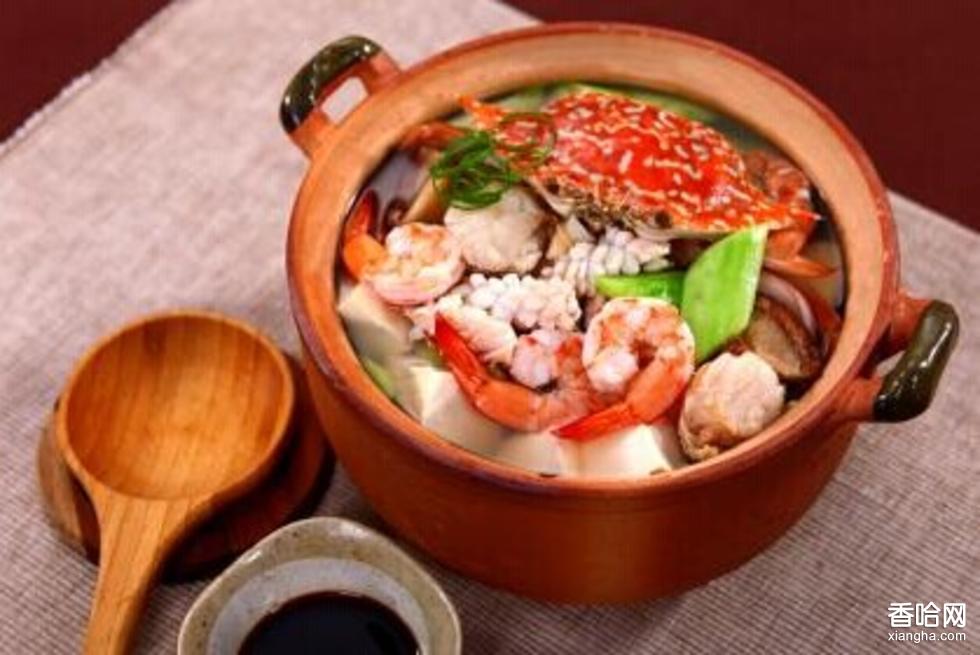將魷魚、海參、魚皮、香菇用開水焯好。蝦肉、鮮貝用淀粉上漿。黃瓜切滾刀塊,南豆腐用水稍煮。起鍋放油燒熱,將鮮貝、蝦肉入鍋滑散撈出。鍋留底油將主、配料投入鍋中,放調(diào)料、雞湯燜約5分鐘,同時將南豆腐放入沙鍋,國內(nèi)“八仙”用濕淀粉勾芡,加黃瓜倒入沙鍋即可。