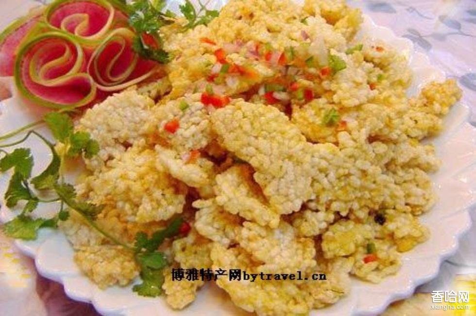 蟹黃鍋巴是經(jīng)典的漢族小吃。