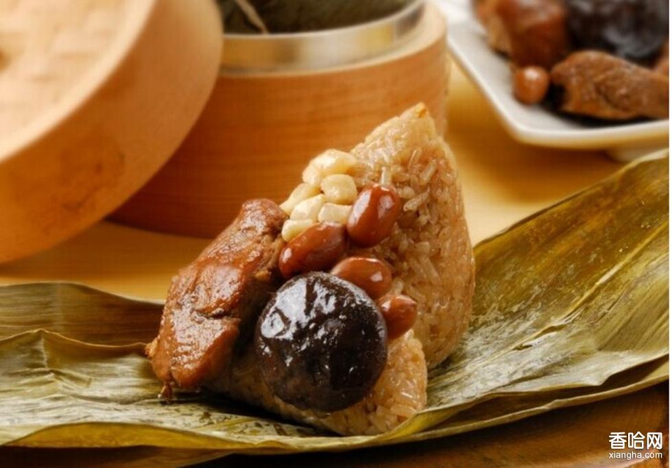 先將糯米用水浸3小時,晾干,放炒鍋中用蒜頭朥炒香,調(diào)入魚露,把竹葉折成三角斗形袋狀,先放入炒好糯米,再放入豬五花肉、香菇、蝦米、紅豆沙、咸蛋仁等餡料,再放糯米,包好用咸水草扎緊,用水煮半小時或上蒸籠蒸半小時。用蒸籠蒸效果較為干爽。