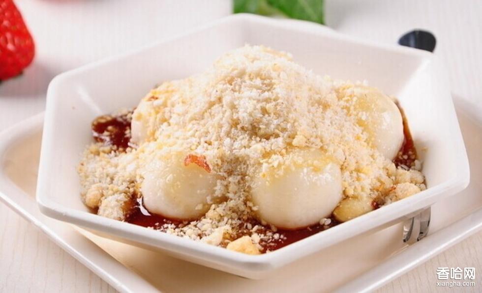 6、將圓子裝盤(pán),撒上增香的配料即可(花生碎和芝麻多多的最好)。