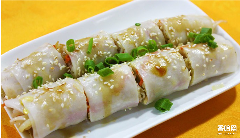 豬腸碌與粉卷相似,但餡是有豆芽、炒河粉等做成的,以整張的河粉作皮來包裹。它類似平時吃的粉卷,用米粉皮包著芝麻、豆芽、蝦皮、蛋皮等?,F(xiàn)在的商家聰明了,加入了不同材料進去,例如叉燒、牛腩、火腿等等。吃的時候可整條吃,也可以切成小段,再沾上特殊的調(diào)料(如辣醬),味道咸中帶香,十分可口。還有些沾上牛腩汁,味道更足。