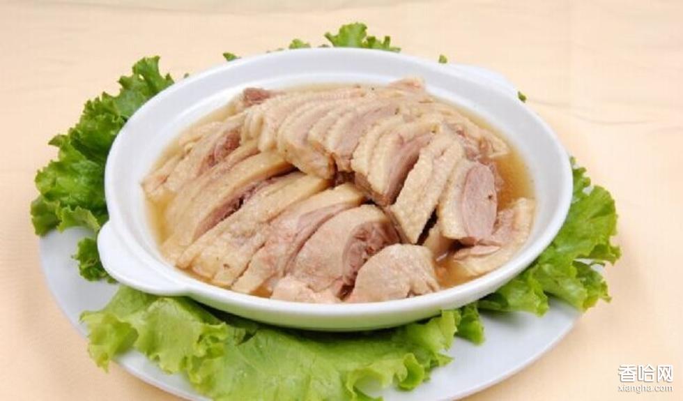 用1只重1千克左右的嫩鴨,宰殺后收拾干凈。將其放入一個大鍋里,倒入能淹沒鴨身的清水,同時放進適量的、姜和黃酒,用大火燒開,撇去浮沫,再移至小火上燜煮10~20分鐘,加適量食鹽,鴨剛熟時,馬上將鍋端下,蓋上鍋蓋靜置一旁,待鍋里的湯涼后,再將鴨撈出,控去湯汁,在鴨的周身涂上香油即可。