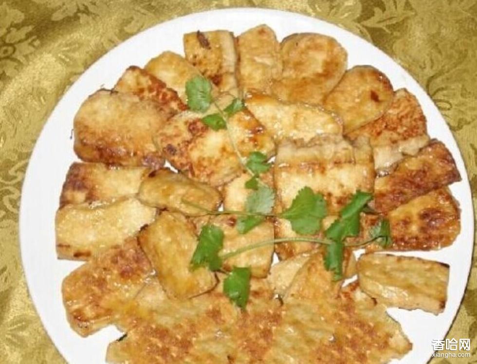 信宜的豆餅是豆制食品,與豆腐相仿,大豆制成豆腐后,還需壓少水份,加工成塊狀。這種食品遍及信宜各地。但最有名氣的,數(shù)北界豆餅。該地制作的豆餅,皮韌,肉嫩,桔黃色,結(jié)實(shí)可串,豆香濃,耐燉。切成三角形半裂開(kāi),內(nèi)裝入韭菜、豬肉粒、蝦米餡料,煎制而成,稱“豆餅角”,其香味濃郁可口,為家庭待客之上等菜式,酒家把它列為信宜傳統(tǒng)美味菜譜之一。外地人來(lái)信宜,品嘗后,均贊口不絕。
