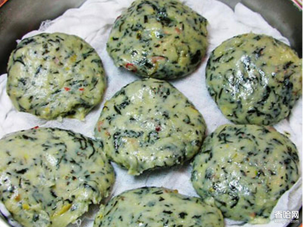 制作方法:1、糯米淘洗后晾干。2、將糯米磨成米粉。3、把臘肉及香蔥一起炒成臘肉餡。4、篙子洗干凈后剁碎煮熟。5、將篙子和米粉揉在一起,要點(diǎn)力氣的。6、做好后準(zhǔn)備上蒸籠的粑粑。7、蒸熟了的粑粑。
