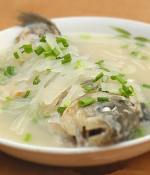 白蘿卜和鯽魚,能健脾利濕,煲出來(lái)的湯擁有奶白的顏色,看著令人迷醉,十分有食欲。