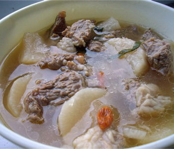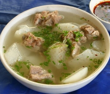 白蘿卜中含有蛋白質(zhì)、脂肪以及豐富的鈣,還富含大量的維生素和磷、鐵等礦物質(zhì),《本草綱目》稱之為“蔬中最有利者”。 排骨除含蛋白、脂肪、維生素外,還含有大量磷酸鈣、骨膠原、骨黏蛋白等,具有滋陰壯陽(yáng)、益精補(bǔ)血的功效。一碗白蘿卜排骨湯,一道營(yíng)養(yǎng)佳品。