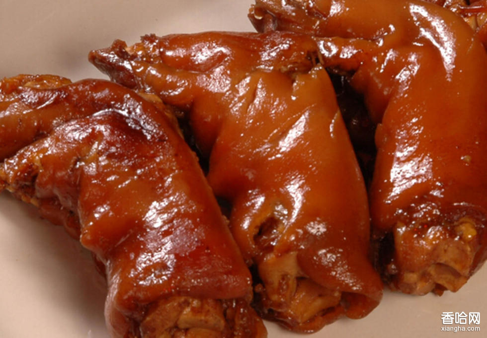 五香鹵豬蹄是一道色香味俱全的漢族名肴,屬于川菜系。此菜汁香味濃、油潤化渣、汁水豐厚,五香味型,集口味、營養(yǎng)、食療于一體。豬蹄,又叫豬腳、豬手,前蹄為豬手,后蹄為豬腳。含有豐富的膠原蛋白質(zhì),脂肪含量也比肥肉低,可以食用