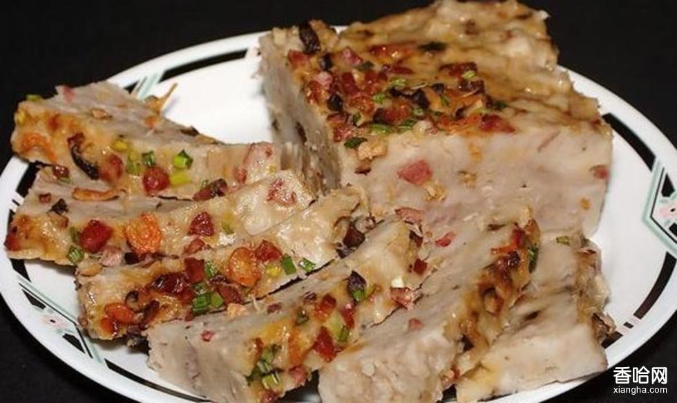 做法:1、芋頭去皮切1cm見方的小丁。蝦仁提前一夜浸泡,蒸熟的臘肉,培根,香菇,洋蔥,分別切??;2、粘米粉加水徹底和勻;3、所有輔料炒過,趁熱加入黏米漿中,拌勻;4、加入芋頭丁,根據(jù)口味加適量鹽,拌勻。盛入鋪有屜布的容器中。蒸鍋放足量水,大火燒開后,放入容器,大火20分鐘,轉(zhuǎn)中火1個(gè)小時(shí);(蒸制時(shí)間要根據(jù)容器大小調(diào)節(jié))5、取出放涼后切片。過油煎過,配以番茄醬味道最好。
