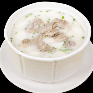 食材:白蘿卜、羊肉、姜、蒜、蔥、生抽、雞精、食鹽。