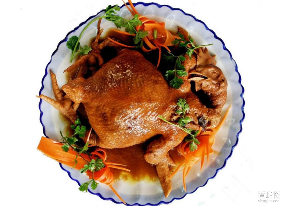 始創(chuàng)于元。夏津曾為“元駙馬都尉武毅王湯沐邑①”(見清乾隆本《夏津縣志·疆域志·沿革》)。王名孛要合,尚太祖成吉思汗女阿刺海別吉(見《二十五史·元史一0九·諸公主表》)。公主賢慧聰穎,除佐王府政事,夙重丈夫飲食起居,備極周洽,凡王餐必重攝生②?!跋慕驗槲湟阃鯗逡胤侵挂皇?,王之孫曰忽都納,再傳曰干朵忽都,再傳曰沈溫祥?!保ㄒ娒駠尽断慕蚩h志·疆域志·沿革》)。王孫忽都納襲位,頗有乃祖之風(fēng),尤重攝生之道,其與營養(yǎng)大師忽思慧③過從甚密。是以,思慧常隨來夏津陪侍,文翰琴棋之外,共論飲膳攝生。一日,見王府所豢報曉雞,毛羽似火,尾翎紛披,頷首稱羨。乃謂王言:“此物味甘平,微溫?zé)o毒,補中安五臟,最宜攝生”。王驚喜不已,即命宰烹。廚夫禿哈(又作圖哈)為祖?zhèn)魇缽N,久侍王府,主司廚饌,藝技精巧,乃揮刃而就。思慧又命輔以菇、筍、木耳、精肉諸料,共雞入鼎而烹。比及食后,王顏大悅,言:“殊美,唯多骨耳”。翌日,禿哈即剔骨而烹。食竟,王言:“益美。第雞與輔料相雜,味混渾不清”,思慧茫然扼腕。禿哈遂言:“此易耳。去臟而不剖,內(nèi)剔骨可也?!蹦擞陬i側(cè)入手,除臟剔骨,而成袋囊。中充輔料,勢若完雞,即和羹而飪。入盤飾以青紅菜蔬,整雞若伏錦簇中。王朵頤大快,頰齒俱馨。食后咂舌吮唇,豎擘極譽:“外味嫩鮮,中餡豐華。妙品哉!”即題詩云:赭光燦燦如熔金,百珍中囊事事馨。天錫鄃城飛火鳳,巧烹細(xì)饌味彌真。遂命搜購民間“丹牡雞(紅雄雞)”,“日輒如法烹食”。嗣后,又改用牝雞(母雞),味尤肥美。年湮日久,此饌遂成王府佳肴之首。制作亦愈趨精純,乃至主料選用當(dāng)年生斤半至二斤牡、牝雞。輔料又增填海米、海參、干貝等,其鮮嫩飫美,倍徙厥初。因主料為夏津土產(chǎn)雞,故又得名“鄃飴珍味雞”。 后饌制④之方傳入宮廷,列入御膳,每當(dāng)麥秋之季則征調(diào)“鄃地土雞”,夏津則應(yīng)時購取,奉發(fā)帝京。凡節(jié)日慶典,朝廷即以“鄃飴珍味雞”分賜王公大臣、皇親國戚,獲者皆以為榮。因之,諸王公卿多有效法,雖其技巧參差不侔⑤,味亦優(yōu)劣有差,然終為各府第宴筵所必備。 清乾隆間夏津知縣方學(xué)成,夙嗜此味,每命邑之名廚為飪。時方母隨任,方知縣為人至孝,每以此饌奉母。縣丞、教諭、典史等屬寮亦多效仿,各以布袋雞奉敬父母。方知縣卸任歸里,宴客必為饌制。食者稱賞,其則意為不佳,嘗于筆記《日廩饌玉》中稱:“饌制雖美,然猶不及鄃味”。 因制作工藝嚴(yán)謹(jǐn),用料精純,故民間烹制絕少,飯莊酒肆亦饌飪幾稀。僅據(jù)《夏津魏氏族譜·序》載“十二世魏公從德為邑中名廚,饌制‘鄃飴珍味雞’名揚遐邇。嘗營店肆于濟(jì)南、石家莊等地,名‘鴻熙居’。凡官商華筵莫不首推,縉紳大賈多所訂取,皆備極褒美”。按其“譜系”推之,魏從德當(dāng)為清乾隆初人。迄于民國傳之于張浩,為第八代傳人,繼傳紀(jì)尚忠,復(fù)傳魏憲華,已是第十代傳人。 斗轉(zhuǎn)星移,璞玉成璋。方今“布袋雞”名揚遐邇,身位陡增,日漸光大輝煌。德州鴻熙居布袋雞有限公司,系夏津布袋雞饌藝第十代傳人、德州布袋雞美食文化研究會長魏憲華創(chuàng)辦。其以“傳統(tǒng)為源,踵事增華。質(zhì)量為本,科學(xué)發(fā)展”為理念,深入發(fā)掘傳統(tǒng)工藝,利用現(xiàn)代科技研究分析營養(yǎng)成分配比。力求風(fēng)味以適眾口,務(wù)使產(chǎn)品尤利補益,以期食者攝生,而臻延年。 注: ①湯沐邑:古時供諸侯、大臣朝見天子前,住宿、齋戒、沐浴的地方。后來用做皇帝、皇后、公主等收取賦稅的私邑,也叫湯沐邑。 ②攝生:保養(yǎng)身體。 ③忽思慧:又作和斯輝。元代蒙古族營養(yǎng)學(xué)家、醫(yī)學(xué)家。元仁宗延佑年間(1314-1320)任飲膳太醫(yī),主管宮廷飲食、藥湯補益事項。曾撰有營養(yǎng)學(xué)專著--《飲膳正要》。 ④饌制:烹炒菜肴。 ⑤侔:mou,等,齊。 夏津縣文牘研究會基本簡介 布袋雞簡介
