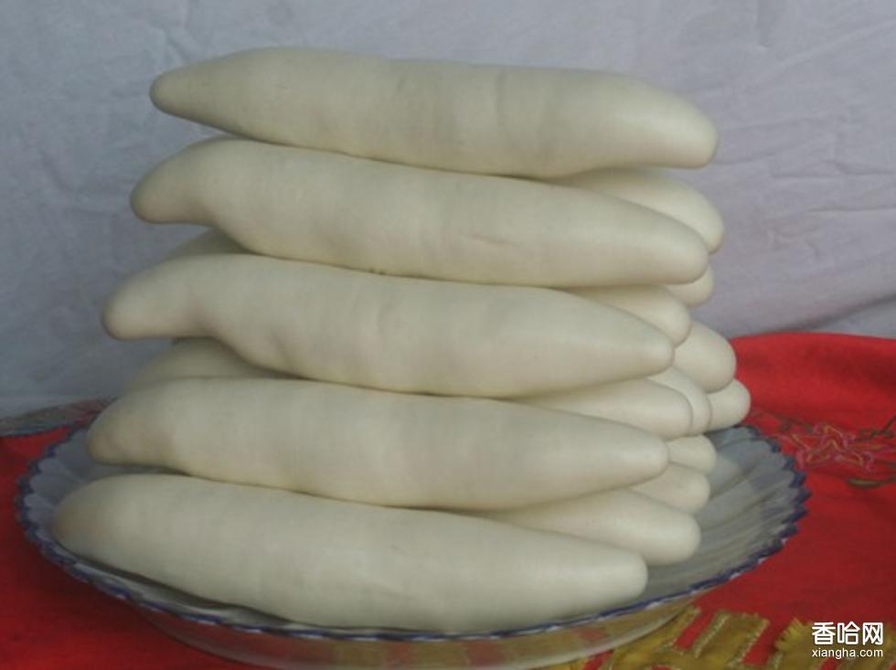 其選用優(yōu)等小麥磨成“78”面粉當(dāng)基本原料,將“肥頭”(酵面)加入適量堿面(0.5公斤“肥頭”加1克堿面)后,和以“嫩面”,在案板上揉勻,用特制木杠反復(fù)擠壓,然后切段手搓成形,兩頭尖,中間粗,插入帶竹簽的蒸籠,上鍋急火20分鐘蒸熟,即可出籠食用,其個體形狀獨特:長20厘米左右,頂端尖細(xì),中間圓而粗(直徑3.5厘米左右),底端較頂端稍平鈍,略呈紡錘形。色白潤如玉,油光有微亮。