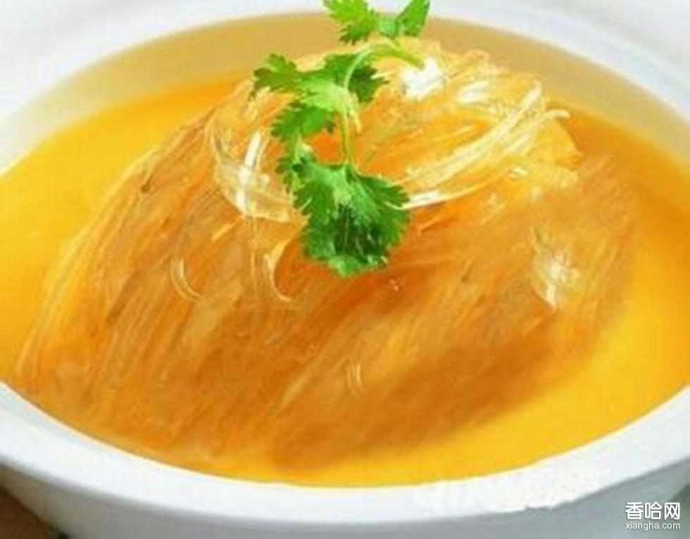 制作方法:1、以葷油起鍋,放入少量姜絲,待油熱后放入雪野鰱魚(yú)魚(yú)頭,用文火煎;:2、待魚(yú)頭一面稍有淡黃色后,魚(yú)頭翻身,加入少許葷油,文火煎, 至魚(yú)頭另一面稍有淡黃色。3、加入料酒; 后加入適量開(kāi)水。4、先以大火將湯至沸,后改小火,慢慢熬湯, 至湯顯粉白色,加入些許胡椒粉; 取出,加蒜葉和蔥.