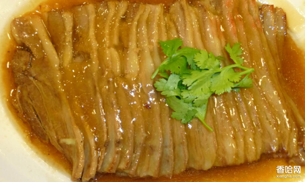 做法:將羊腰窩肉在冷水中泡透,洗凈,放在開水鍋中煮透,取出洗凈,再放入湯鍋內(nèi)煮熟,撈出晾涼,撥去云皮,切成長13厘米、粗2.3厘米的條,整齊地擺入盤內(nèi)。將炒鍋置于微火上,加入芝麻油,白糖、八角攪炒,待白糖變色時放入蔥、姜絲、蒜片繼續(xù)攪炒,然后加入清湯、醬油、紹酒、精鹽、白糖,倒入羊肉條,用旺火燒沸后移至微火煨,待湯煨剩一半時,挑出八角不用,加入味精、濕淀粉勾芡,淋上芝麻油,顛勺把羊肉條全部翻過來(保持完整),倒入盤內(nèi)即成。