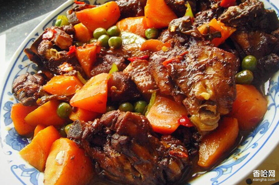 醬燜雞是一道色香味俱全的漢族名菜。把整雞斬大塊,放入冷水中,水沸后撇去浮沫,盛出雞塊備用;紅尖椒、綠尖椒切滾刀塊,蔥、姜切片;炒鍋中放油,油熱后放入蔥、姜炒出香味,放入雞塊翻炒出油,倒入料酒烹香;將豆瓣醬用清水稀釋,倒入鍋中,倒入老抽、白糖,蓋上鍋蓋,大火燒開,小火燒約20分鐘;開大火將湯汁收至將干,放入尖椒翻炒1、2分鐘即可。