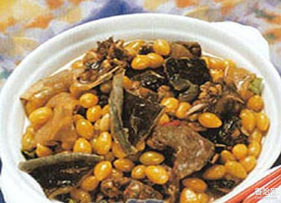 山東菜系 、浙江菜系中都有瑪瑙銀杏?!艾旇сy杏”是傳統(tǒng)風味菜。此菜顏色金黃,晶瑩剔透,酷似瑪瑙。銀杏又名白果。樹大根深,生命力極強,盛產(chǎn)于魯中南地區(qū)。銀杏干果,外裹硬殼,內(nèi)含茅芯,只食其肉。富含磷、鈣、鐵、硫胺素、核黃等多種維生素,具有止咳平喘的功效