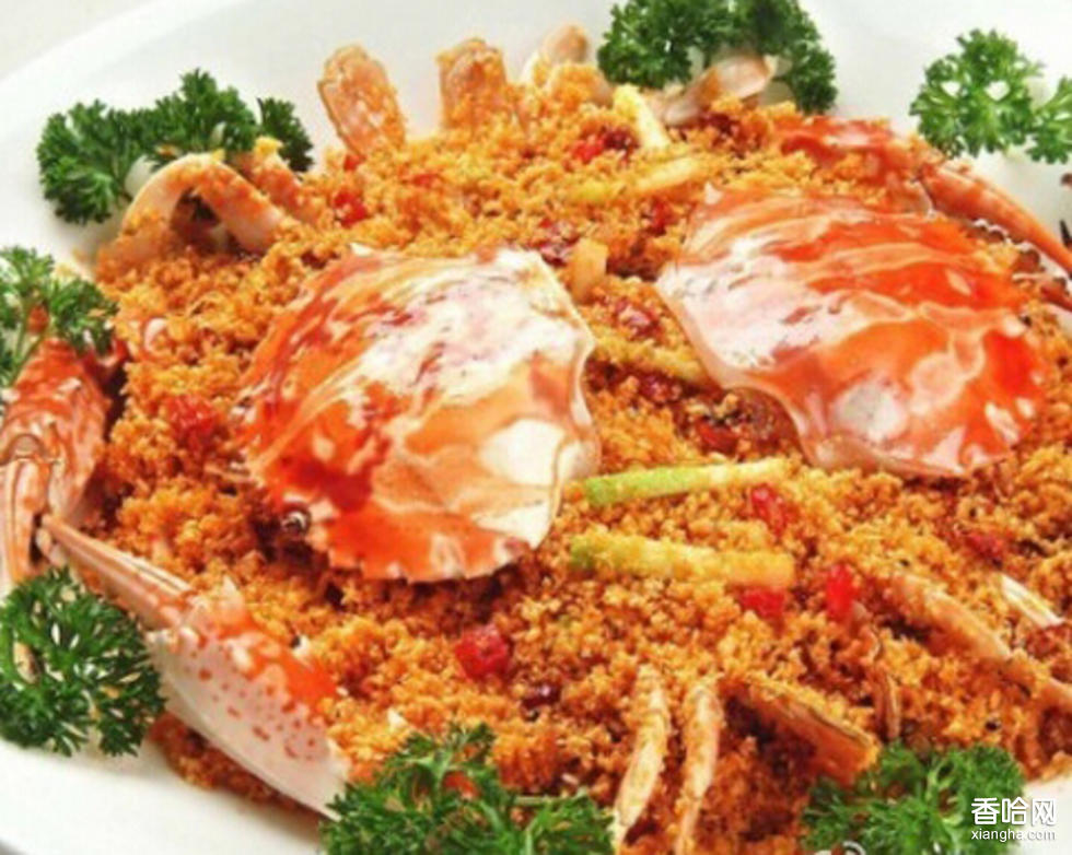 制作過程:1 將海蟹去掉臍和蟹蓋,除去鰓后沖洗干凈,順剁成兩塊,放盆在加料酒,味精、鹽、辣椒粉腌片刻。2 炒勺上火,注入花生油燒至8成熱,將海蟹刀口斷面處蘸淀粉后,入油中炸呈金黃色時(shí)撈起,兩半蟹拼好碼入盤中。3蟹蓋也入油中炸呈赤色,蓋在炸蟹上恢復(fù)原樣即成。