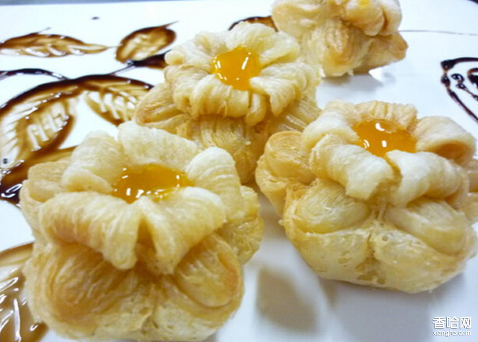 海棠酥,漢族名點,造型美觀大方,外酥內(nèi)甜,松軟滋潤,是在安徽傳統(tǒng)糕點基礎(chǔ)上的創(chuàng)新油溫不宜太低,以免影響造型。