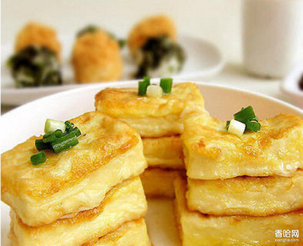 制作步驟:1、豆腐切成16片,加鹽、味精腌10分鐘,放入面粉中兩面沾裹均勻,再沾上一層蛋汁備用。2、大火燒熱炒鍋,加500克油燒至五分熱時,下豆腐片炸至皮色金黃即撈出瀝油,并修去多余、不均整的蛋衣。3、鍋內(nèi)放油10克,以大火燒熱,下蔥花、姜末爆香,續(xù)下酒、高湯、鹽、蝦籽、豆腐,再將豆腐翻個面便可出鍋,盛盤時盤底可墊生菜葉作為裝飾。