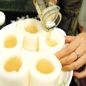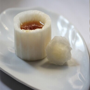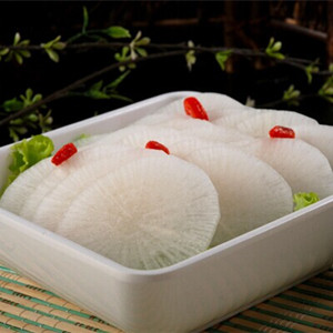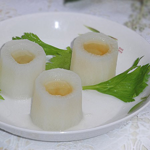 做法三:把白皮大蘿卜洗干凈后,挖空中心,加入適量蜂蜜,放入大碗內(nèi),加清水蒸煮20分鐘,熟透即可食用。