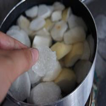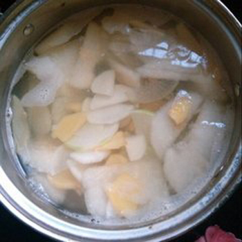 白蘿卜具有除痰潤肺、解毒生津、和中止咳的作用;梨具有滋陰潤肺、止咳祛痰的作用。最近天氣忽冷忽熱,許多人,尤其是老年人和孩子,無法適應(yīng)這種氣候,感冒咳嗽的人也多起來了?;颊咴谟盟幹委煹耐瑫r(shí),還應(yīng)注意配合適當(dāng)?shù)氖朝煟@樣才能盡快痊愈。此時(shí),可將白蘿卜梨湯作為患者的日常飲料,能起到緩解咳嗽的作用。中醫(yī)認(rèn)為,“脾為生痰之源,肺為貯痰之器”,是說咳嗽與人的脾胃具有密切關(guān)系,所以,調(diào)整脾胃可以對咳嗽起到很好的治療作用。白蘿卜具有消食、理氣、化痰的功效,能很好地調(diào)理脾胃。而梨具有潤肺清燥、止咳化痰的功效。因此,白蘿卜和梨配合,是咳嗽病人很好的輔助治療食品,即使是伴有發(fā)熱的病人,也可以食用。白蘿卜湯還可以預(yù)防咳嗽?,F(xiàn)代人由于營養(yǎng)過剩,不少人屬于脾虛濕盛的體質(zhì),尤其是經(jīng)常感冒咳嗽的兒童,典型表現(xiàn)為舌苔厚膩、大便不暢。而經(jīng)常服用白蘿卜梨湯,可以有效地調(diào)整人體的脾虛濕盛狀態(tài),減少感冒、咳嗽的發(fā)生。