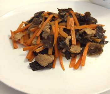 如果以前吃過食堂,相信有很多朋友知道有這樣一道菜,木耳胡蘿卜炒肉。通常食堂會將胡蘿卜、木耳和肉絲切絲,味道香甜可口,算是食堂里的一道美食。
