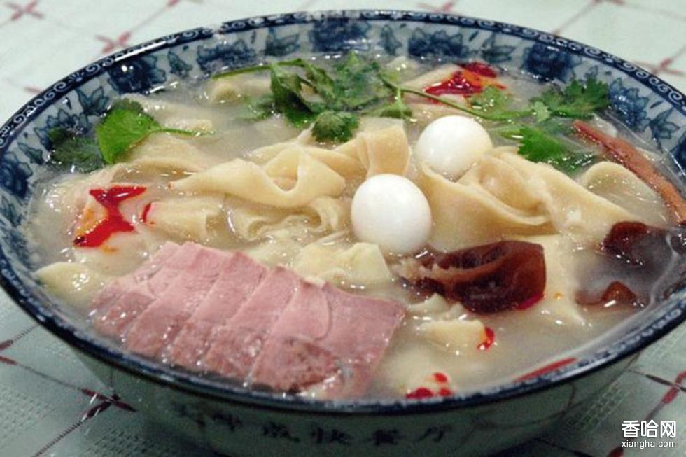 選用上好鮮羊肉,經(jīng)反復(fù)浸泡后下鍋,撇出血沫,放入全大料,將肉煮爛。另用精制面粉,兌入適量鹽堿和成軟面,經(jīng)反復(fù)揉搓,使其筋韌。下面時,鍋內(nèi)放原汁肉湯,將面拉成薄條入鍋,放上羊肉,配以黃花菜、木耳、水粉條。上桌時外帶香菜、辣椒油、糖蒜等小碟,其味更鮮,成為鄭州有口皆碑的佳肴,外地人也經(jīng)常慕名前來品嘗。