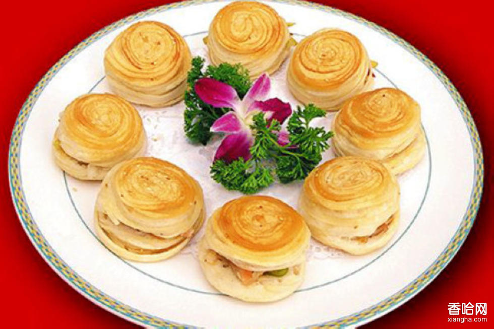 葛記壇子肉燜餅是用餅牙和特制的壇子肉加青菜燜制而成。其餅是用軟面烙成千層餅,放涼后切成簾子棍形備用;壇子肉選用帶皮五花豬肉,切成2厘米見方的方塊,先放入鍋內(nèi)添水煮開,撇去浮沫雜質(zhì),撈出肉快裝入壇內(nèi),下足八大料,外加香腐乳,倒入肉湯封口,大火燒開后,改用文火慢燉,煨至爛熱。開壇時濃香四溢,過往行人聞香止步,素有“開壇香”之美濫。燜餅時,鍋內(nèi)用青菜鋪底,放上餅條和壇子肉,加高湯稍燜即成。其肉香醇厚,肥而不膩,其餅柔軟適口,老少皆宜。燜餅時配萊除用豆芽外,更多是用四季鮮菜,如蒜苔、小白菜、四季梅、茭白等。燜餅用的湯,除豬肉湯外,還用雞湯、鴨骨湯,因此燜出的餅軟香不膩,鮮美爽口。