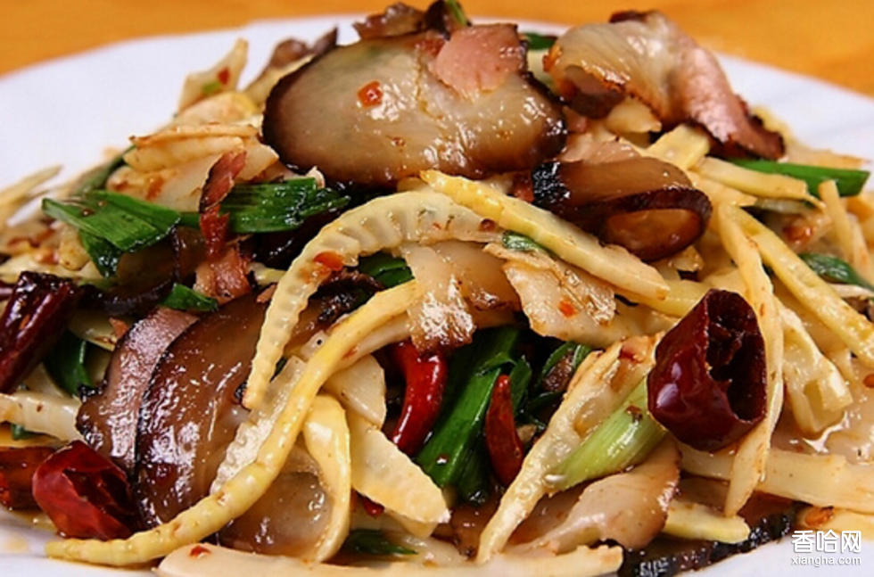 冬筍臘肉是一道美味可口的漢族名肴,是湖南人民極為喜愛的時令菜。隆冬時節(jié),冬筍上市,取其肥嫩者與臘肉合烹,別有風味,此菜臘肉香軟,冬筍鮮脆。此烹調方法最原汁原味能品嘗出冬筍的鮮甜和臘肉的咸鮮,亦適合牙口不好的老者冬季進補。
