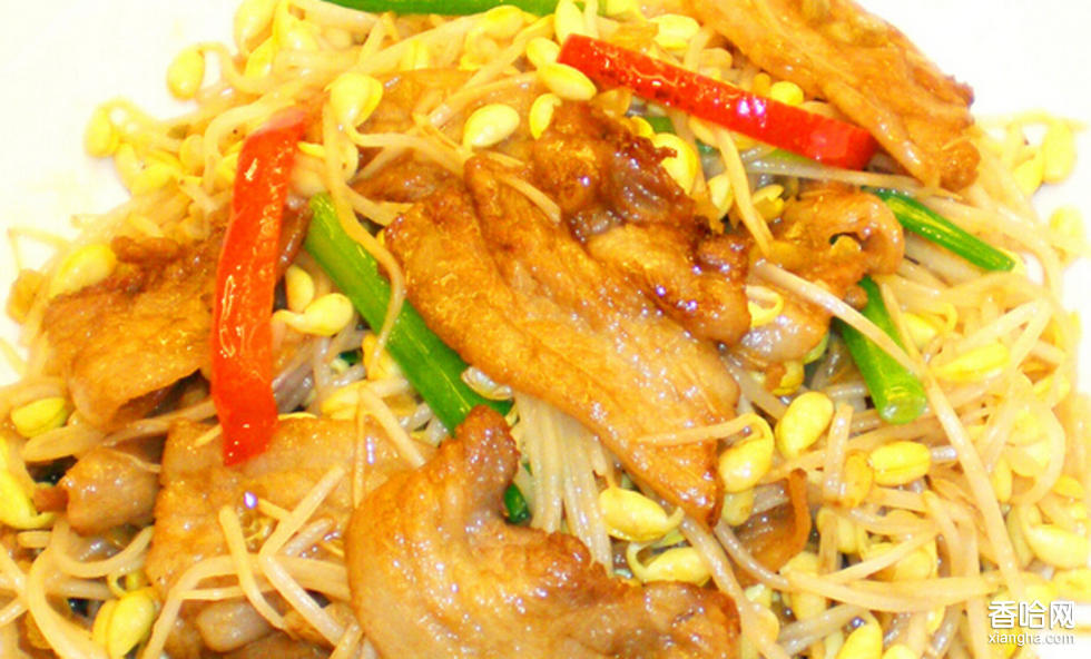 主料:300g帶脂里脊、500g黃豆芽 配料:適量油、黃豆芽炒肉、適量鹽、適量醬油、適量姜絲、適量紅椒、適量花椒