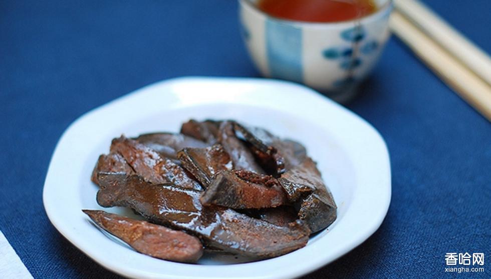武平豬膽干(最早應寫成豬膽肝,由于多數(shù)人誤讀所以變成豬膽干),是福建武平傳統(tǒng)的漢族名菜,屬于閩西八大干之一。此菜色澤紫褐,香而微甜,是宴席冷盤名菜。吃時,只要將它蒸熟,趁熱搽上一層芝麻油,待冷后切成薄片再拌少許蒜片,便香氣四溢,韻味無窮。