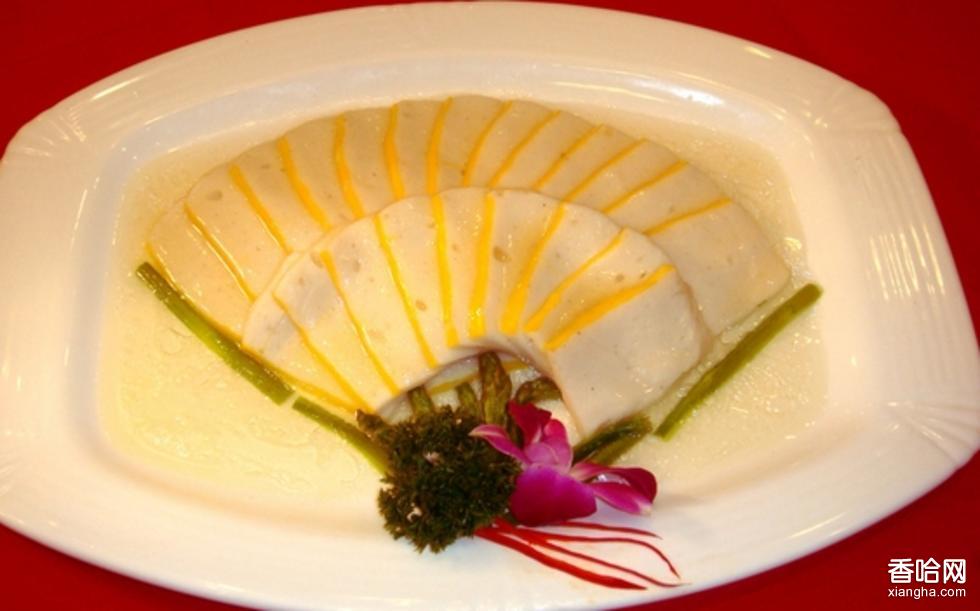 雪花魚糕,是福建連城一帶的漢族風味名菜,選用鮮凈魚肉,剝除皮骨配以肥豬肉、地瓜粉、蛋清及調(diào)味品制成,裝盤后觀之如銀似雪,食之鮮香滑嫩,又稱雪花銀片、佯魚。上杭、連城人常以此菜為判斷喜慶宴席之標準,有“不出佯魚不成席”之說。
