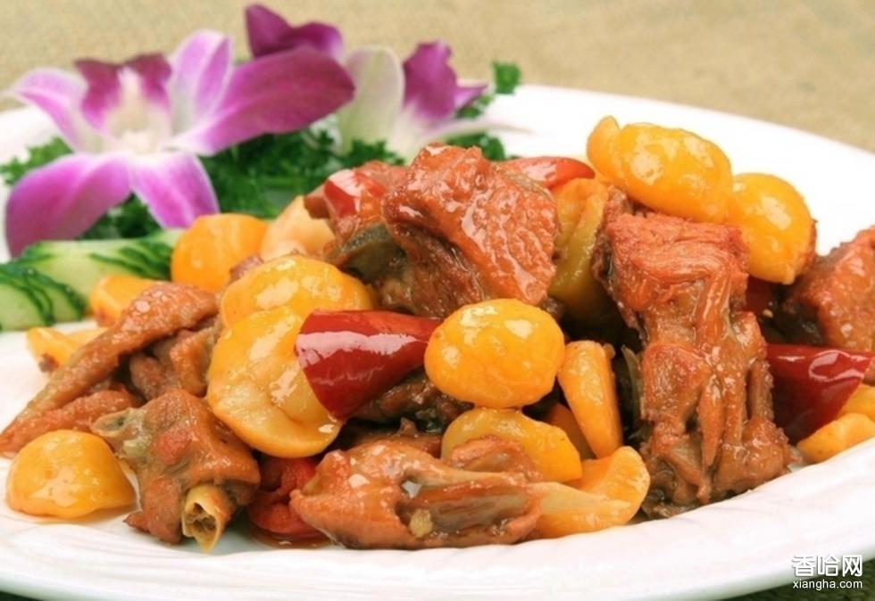天師板栗燒土雞,鷹潭市的傳統(tǒng)名菜,江西鷹潭龍虎山出產(chǎn)的天師板栗,個大香甜,淀粉豐富,是歷代天師特別喜愛的果品和滋補品,素有“人間仙果”之稱。而這缽天師板栗與當?shù)剞r家喂養(yǎng)的土雞相配,在文火中慢慢地燒出來的“天師板栗燒土雞”,油光發(fā)亮,清香思溢,是這里很有名的美味佳肴,能吃這道菜,可謂“國 賓”的待遇。